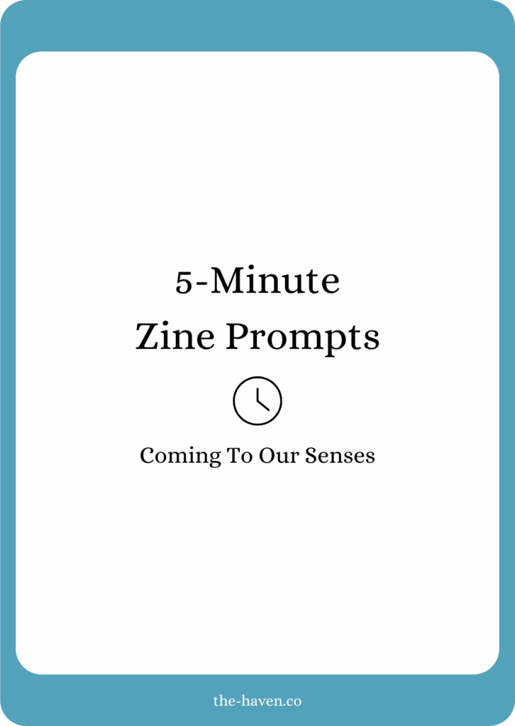 Coming To Our Senses is our community zine: a digital PDF and video that captures the Haven spirit and gives space to the messy, curious, and creative ways we notice life. Each issue (every 6-8 weeks) grows out of a Phrase Maze conversation – a loose, playful prompt we explore together at the start of the creative cycle.