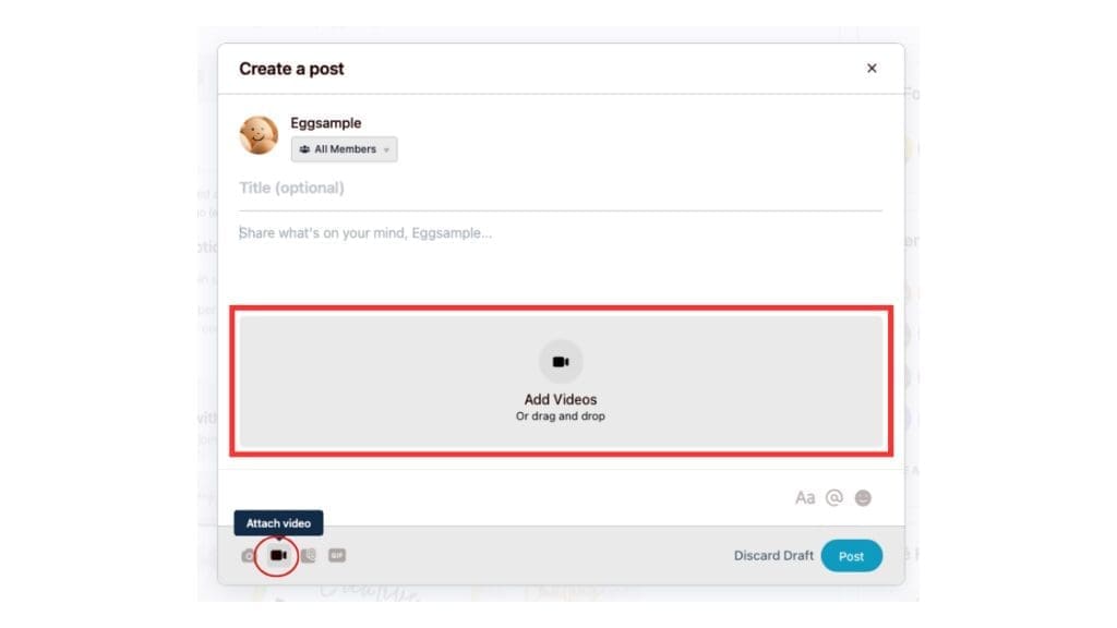 Click “Attach photo” to open the media upload link. It’s the same for both photos and videos. Click the “Add” box to open a hard drive browser you can pick from, or drag and drop them in from your computer.